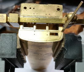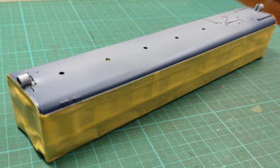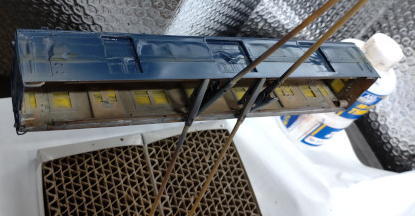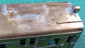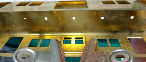 下回りの目途が立ち↓再び上回りのシール・雨どい類の取付けに取り掛かる(シールには、あらかじめハンダコーティングを施す)