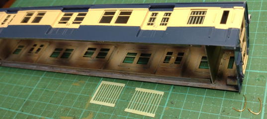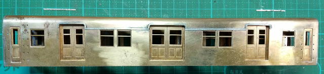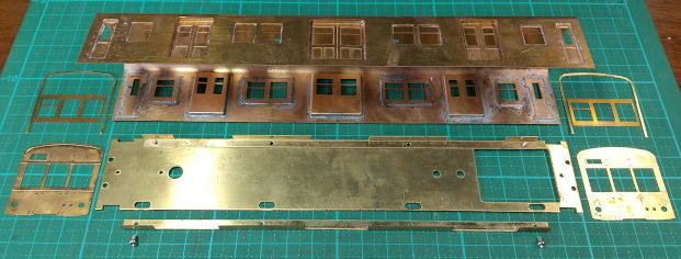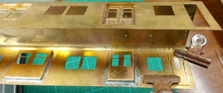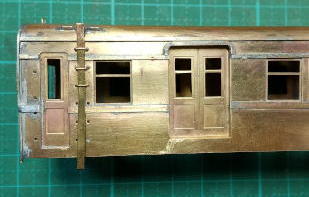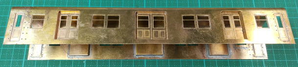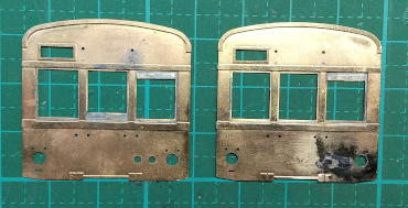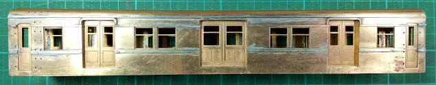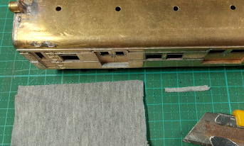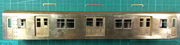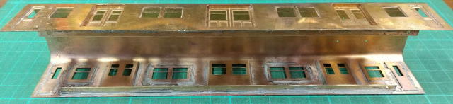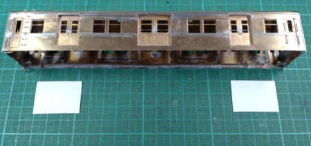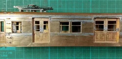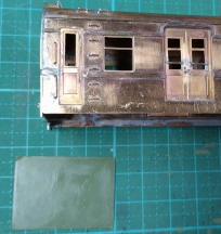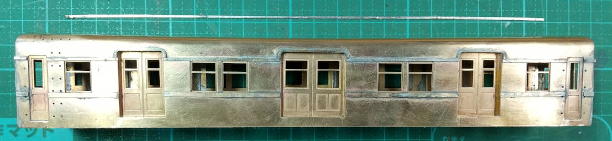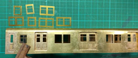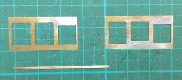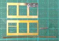 真鍮細板を窓枠に合わせて切り出し↓窓の段違いを表現し、中枠は切断して撤去