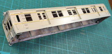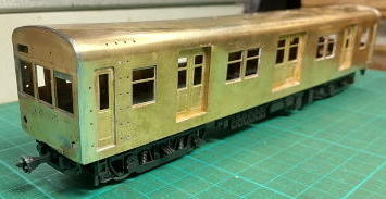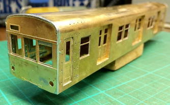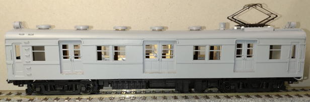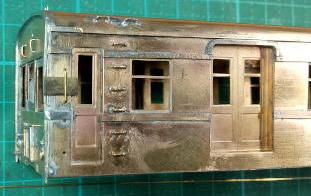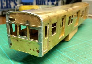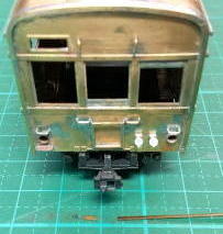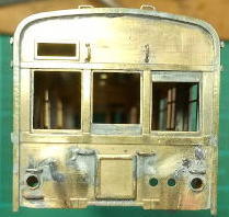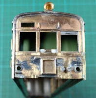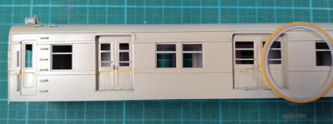妻面正面窓の形状が、2面共全く同じパーツ(飯田線のクモニ13を狙うため、窓枠改造に入る)