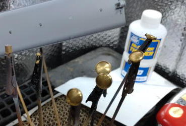 信号炎管の位置↓穴あけ 避雷器周りのディティールアップ↓配線