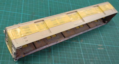 スカ色塗装↓完了⇒ 天井塗装に向け側面のマスキング
