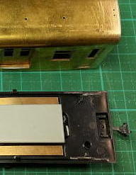 突起部を思いきってニッパーでカット↓(クモハ12へは戻らなくなり後戻りは無し) なんとプラ床板厚みと真鍮床厚みがほぼ同じ