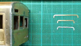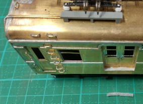 パンタとランボード↓移設完了(いい感じです) 次に荷物扉のディテールアップ↓0.3mm真鍮線で持ち手と取っ手を自作し穴を開け取付け