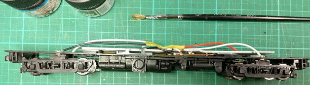 フラットな床板になったが↓戻せるパーツは極力戻し(強度確保も兼ねます)台車集電版からリード線でモーター端子へ直結